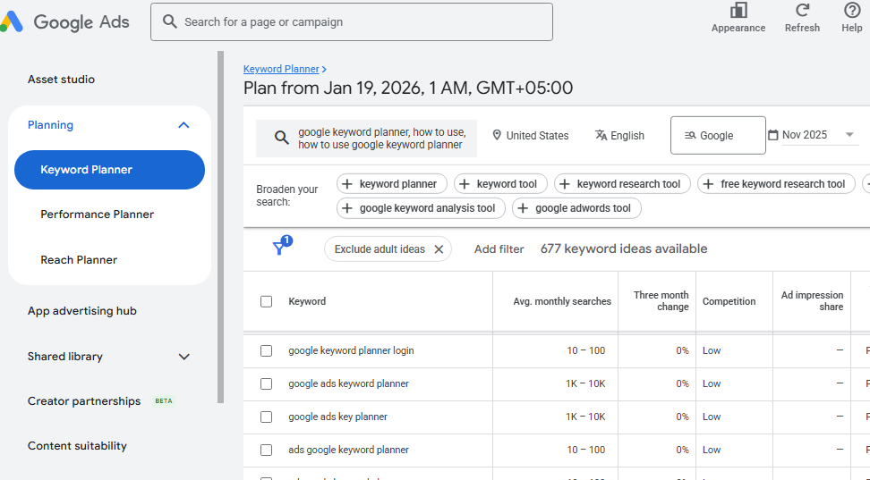 Keyword Planner for Google Ads Campaigns